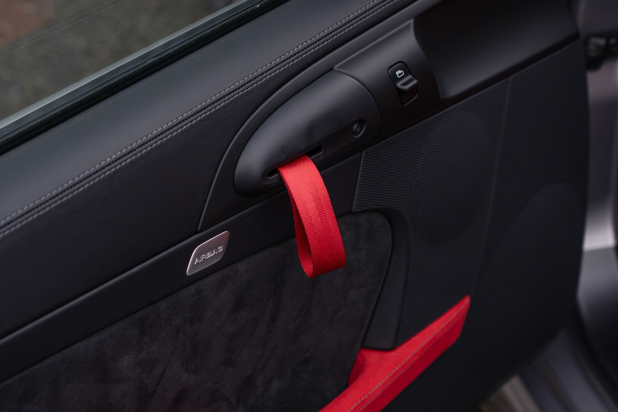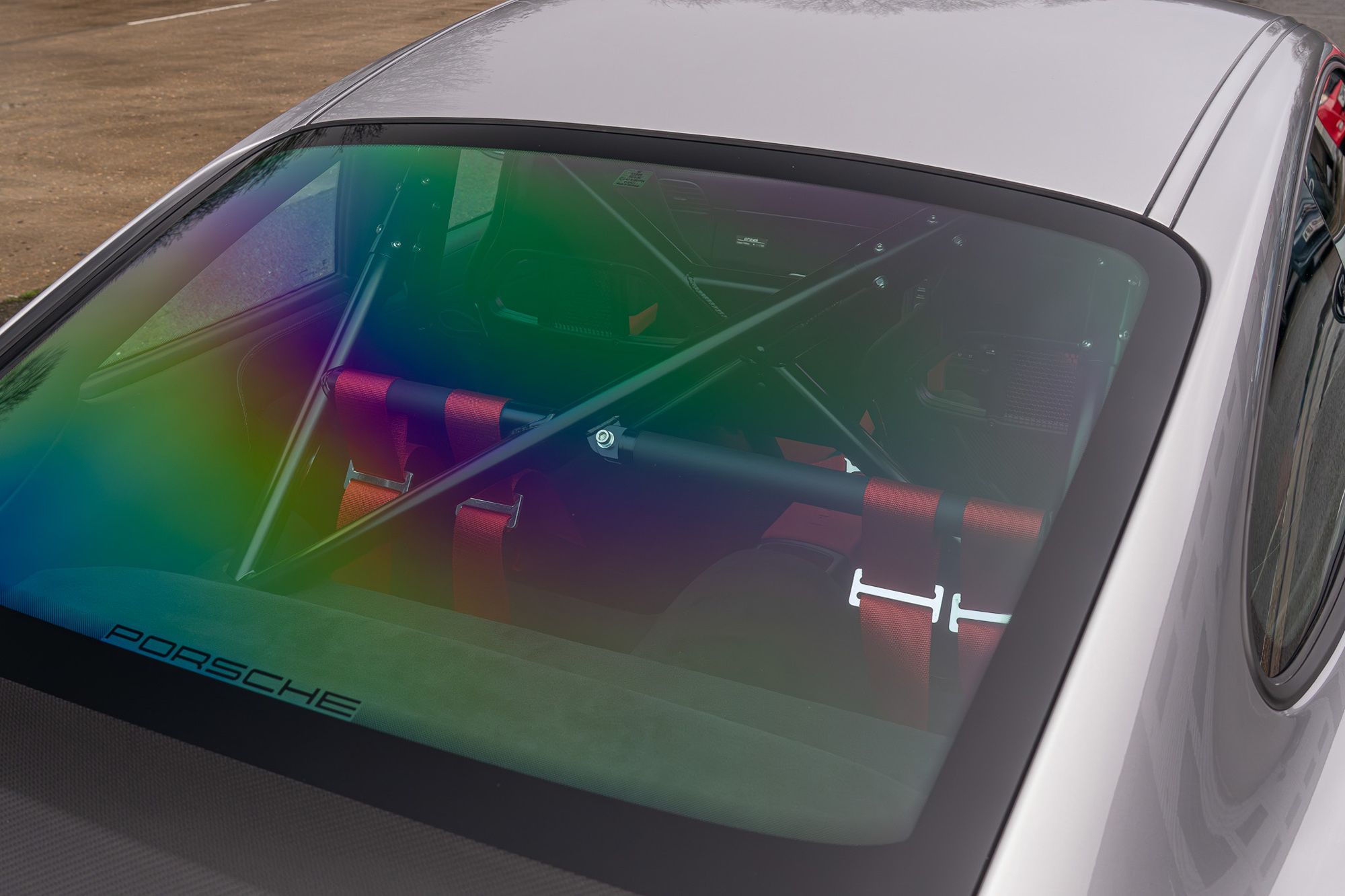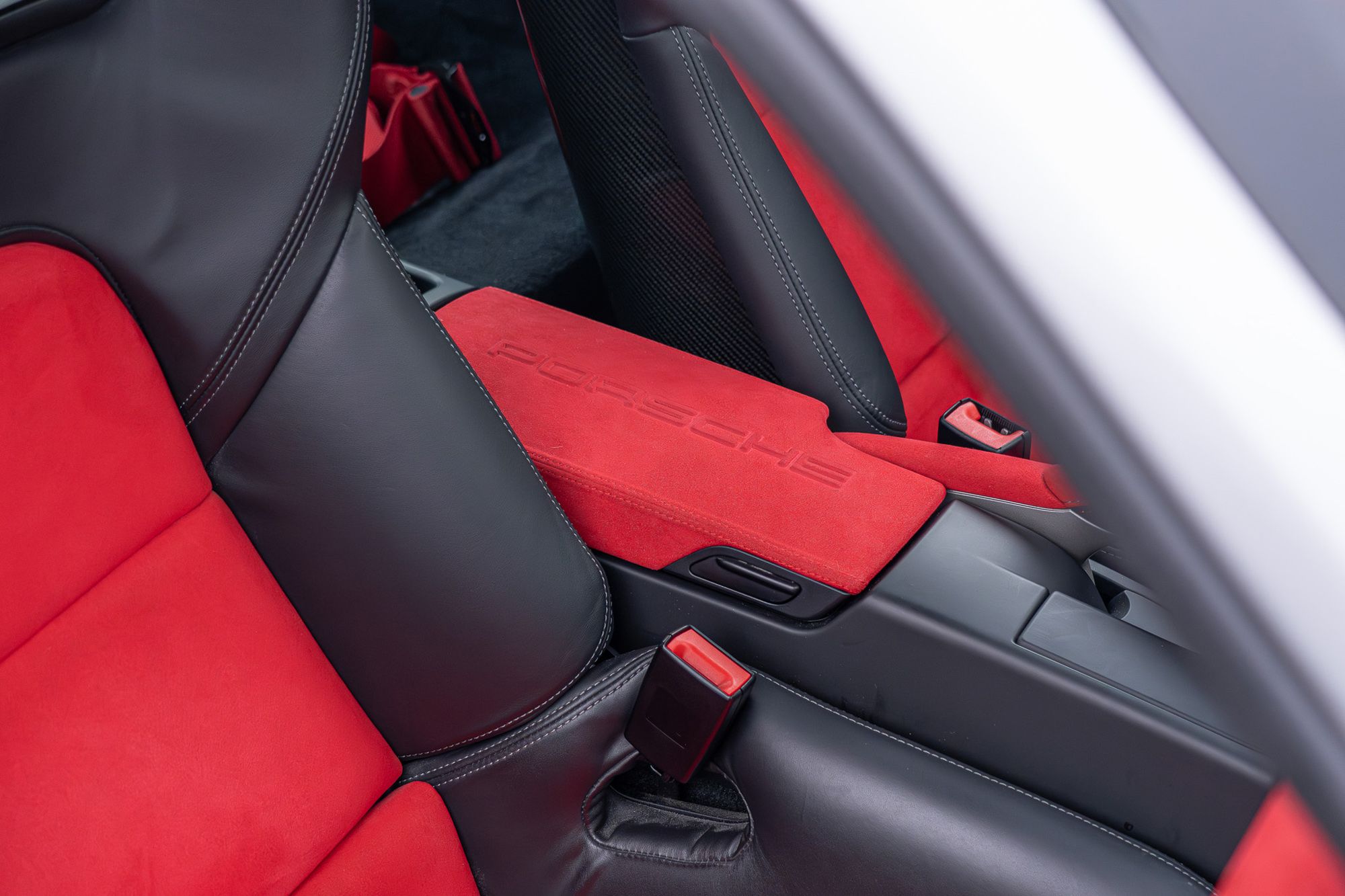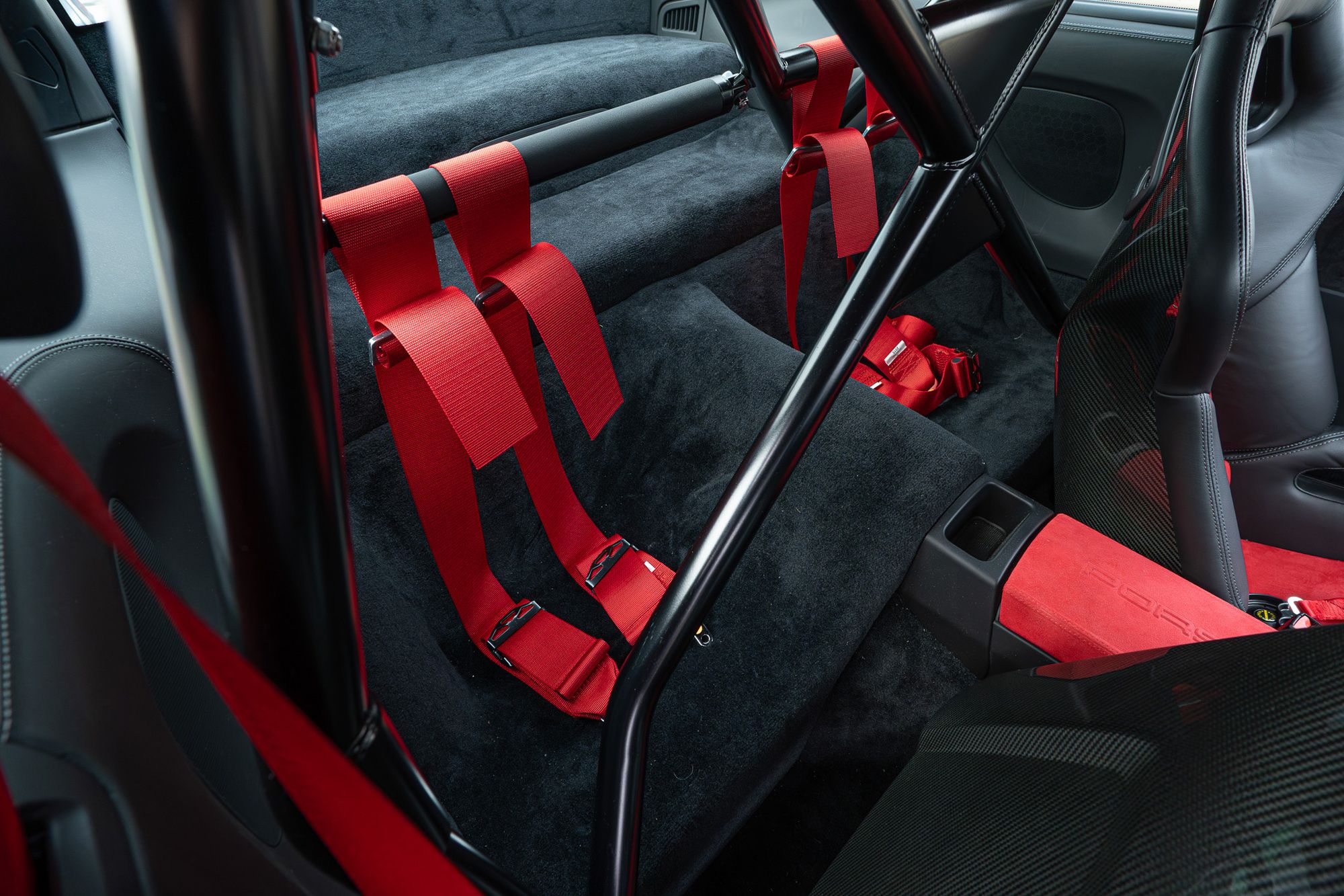 Porsche crest embossed on hed restraints