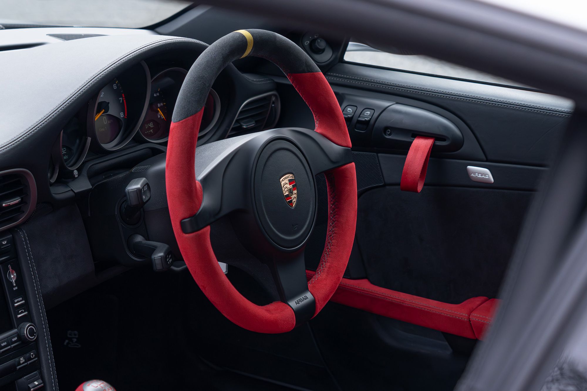 Black - Red thicker steering wheel alcantara