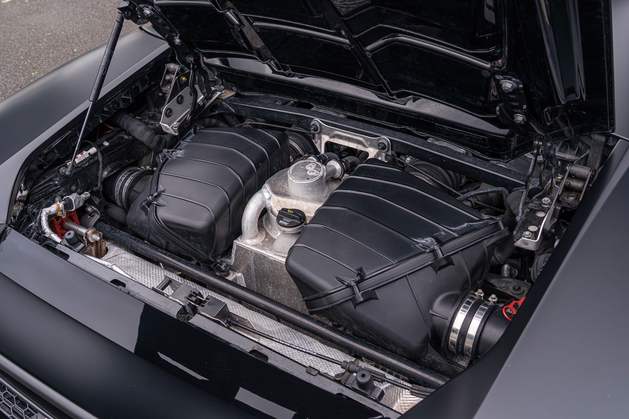Reasonably quiet until you hit 4,500rpm when the titanium valves in the exhaust open up and the intensity and volume of sound change exponentially. The V10 does not flatter to deceive and when it comes on cam performance is predictably furious. The Evo’s 631bhp and 442lb ft of torque result in – 0-62mph dispatched in just 3.1 seconds with a top speed which breaches the 200mph barrier.
